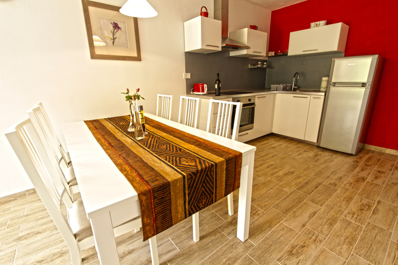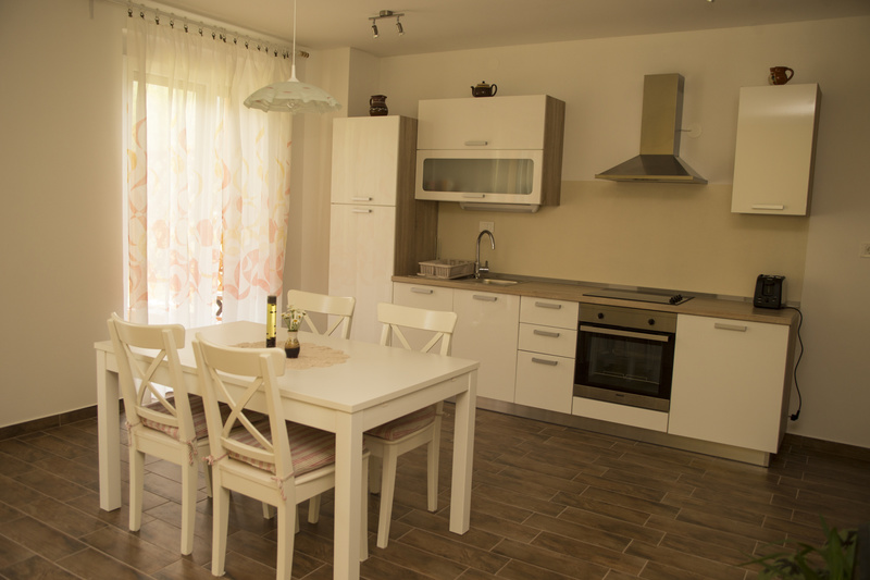 - Sobe: dnevni del z jedilnico in kuhinjo, bivalni del (raztegljiv kavč), 2 spalnici ( 2 + 2 zakonska postelja), tuš in kopalnica